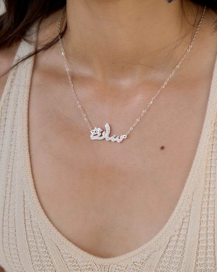 Our All Bling Name Necklace in 925 sterling silver is the ultimate statement piece for sparkle lovers. Fully customizable with any name and adorned with shimmering stones from edge to edge, it is available in silver, gold, and rose gold. Perfect for adding glamour to your everyday style or gifting to someone who loves a little extra shine.