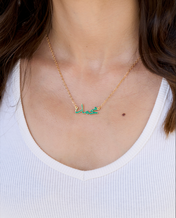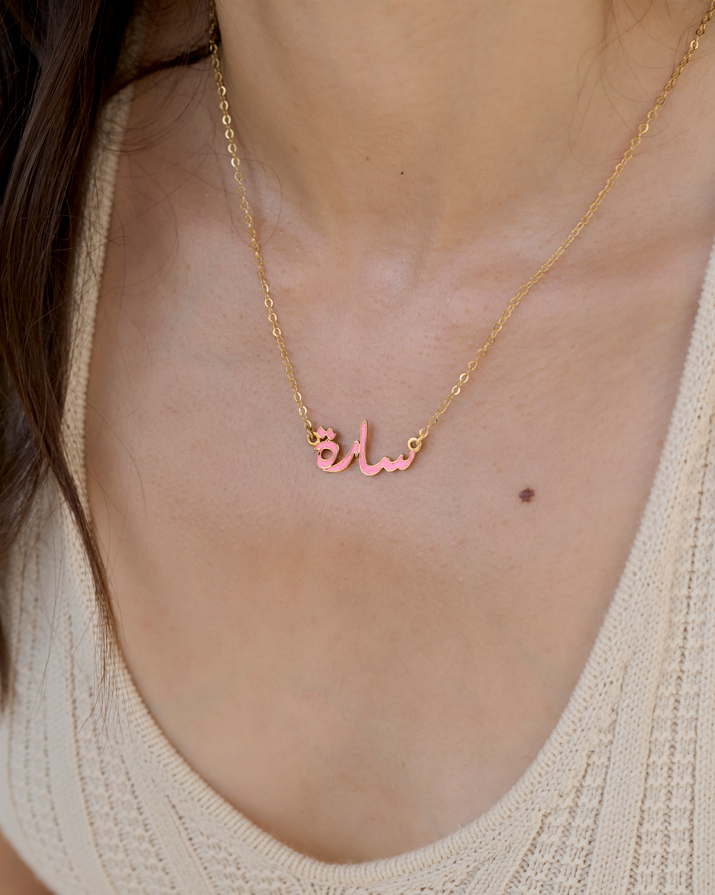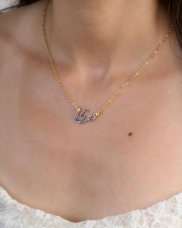 Our Arabic Colored Name Necklace in 925 sterling silver is a timeless way to keep a name close to your heart. You can customize it with any Arabic name, whether it is your own or the name of someone you love, and choose from silver, gold, or rose gold. This piece blends personal meaning with elegant style, making it perfect as a thoughtful gift or a signature accessory for yourself.
