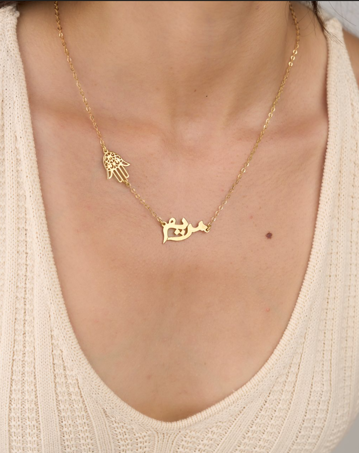Arabic Name Necklace with Hamsa Charm