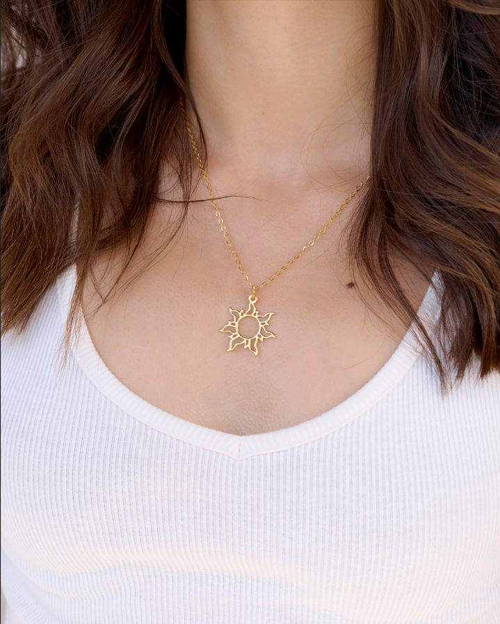 Our Celestial Sun Necklace features a radiant sun pendant, symbolizing energy, vitality, and new beginnings. Crafted from high-quality 925 sterling silver, it is available in silver, gold, and rose gold finishes. A stunning accessory that brings light and positivity to your jewelry collection.